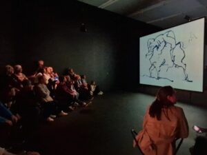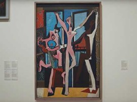 This show includes lithographs, etchings and iconic paintings. Among other treasures, there is a wildly camp film of Picasso acting Carmen in a mantilla, but the real highlight of this show is the dark theatre that has been created in the middle of the show. Picasso paints 20 paintings in stop motion film in real time on a huge lighted screen on the other side of the easel and it’s just delightful. This film, called Le Mystère Picasso was made by Henri-Georges Clouzot in 1956, and won the special jury prize at Cannes that year. I’ve never seen it before, and the children in the audience were as entranced as I. He appears to rest his brush with an amazing image for a minute or two, but no, he paints over it. The facility of his line drawing turns a mere squiggle into the flaring nostrils of a horse, or the muscled legs of an acrobat, a dead toreador, the generous thighs and breasts of a nude, a goat, or a bull worthy of Goya. One prays “oh please Picasso don’t destroy it, it’s so brilliant” but he moves on. It turns into another beast altogether. At one point he comes out, a wicked grin on his face, from behind the screen. He looks like a French matelot and a Catalonian Wizard of Oz. Clouzot congratulates Picasso, who summarily rejects his compliments, saying “No, I must take more risks” and he goes back behind the screen to paint over what he has done.